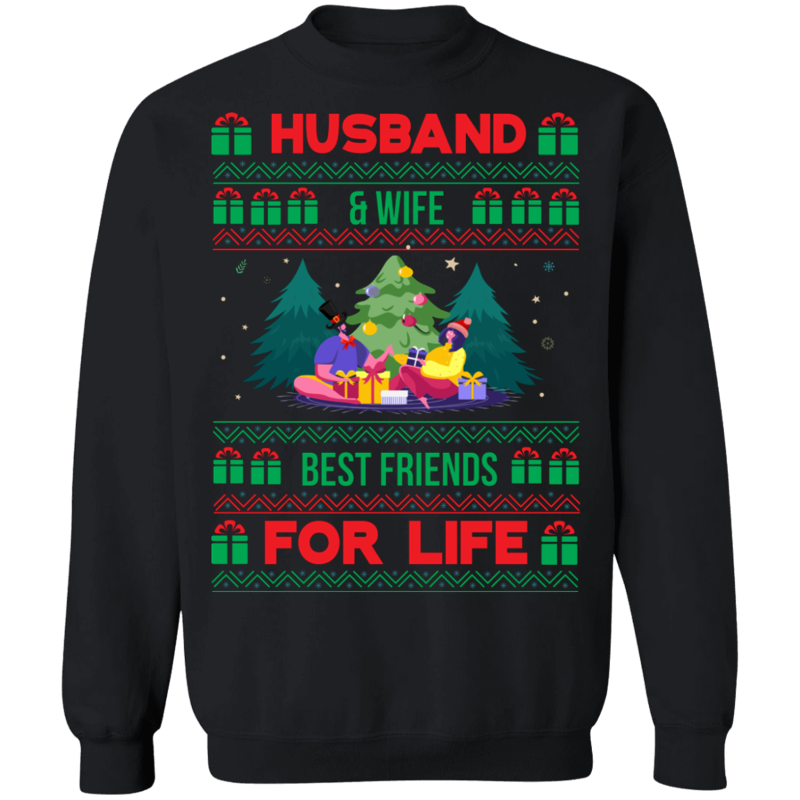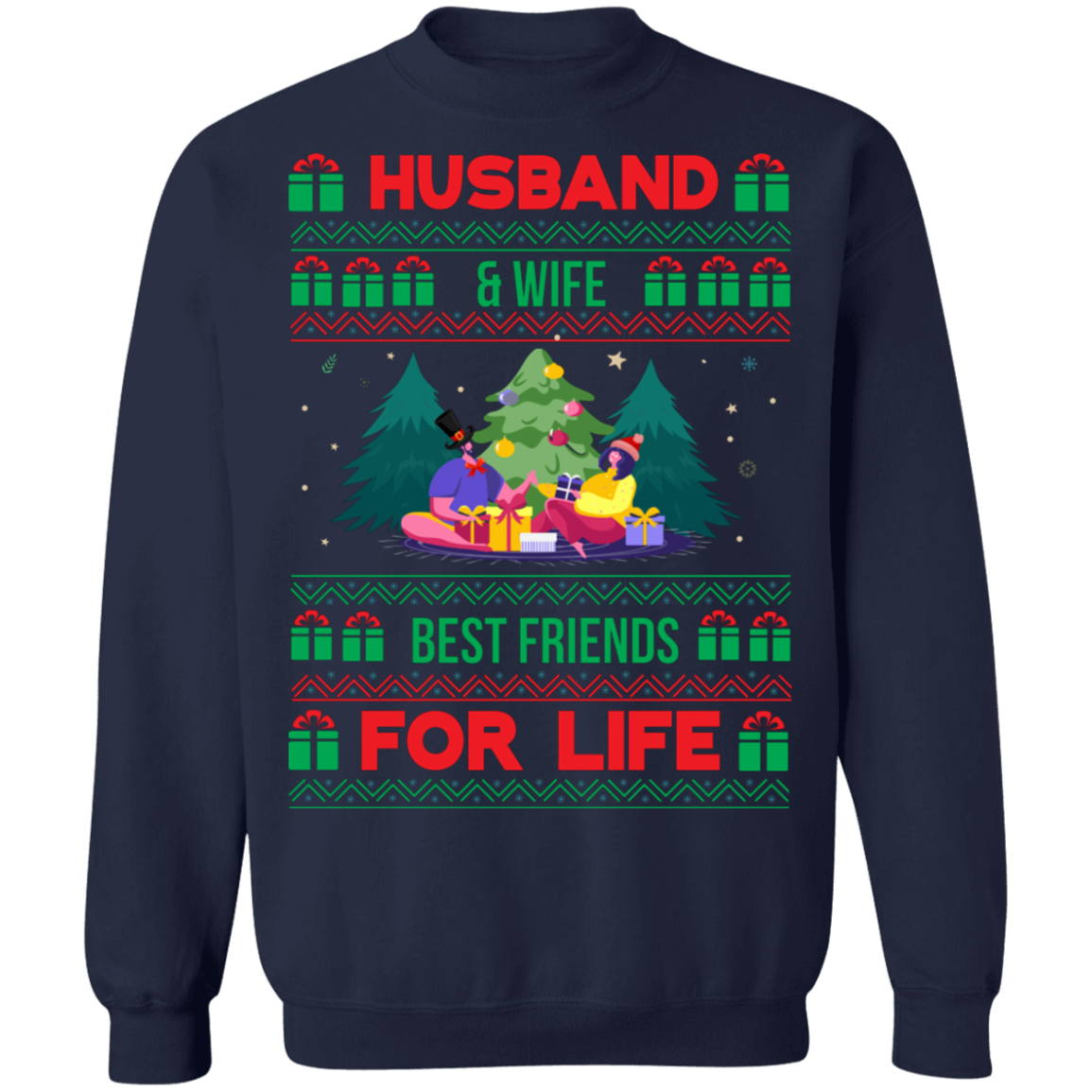 Husband and Wife Best Friends for Life Ugly Christmas Sweater, Wedding Anniversary Sweatshirt, Couple Xmas Sweater