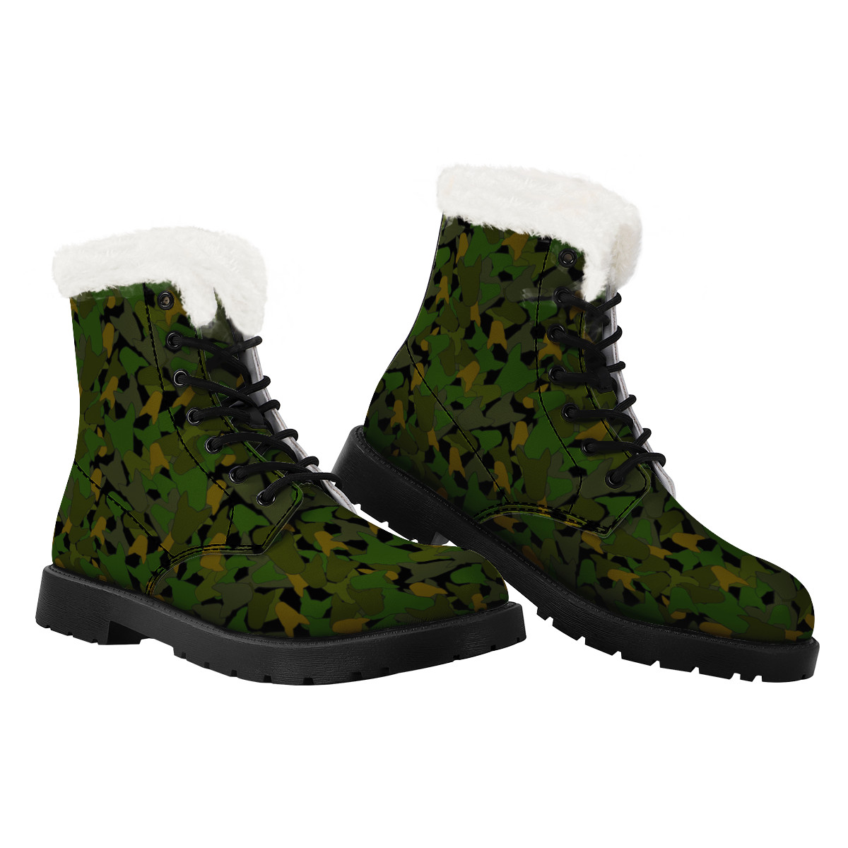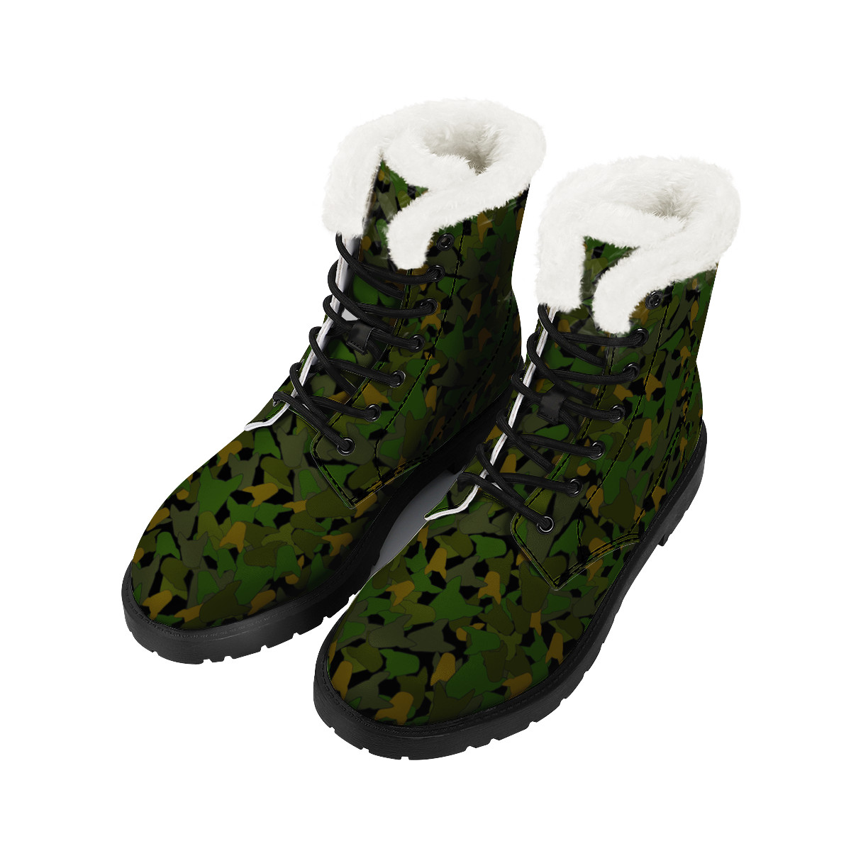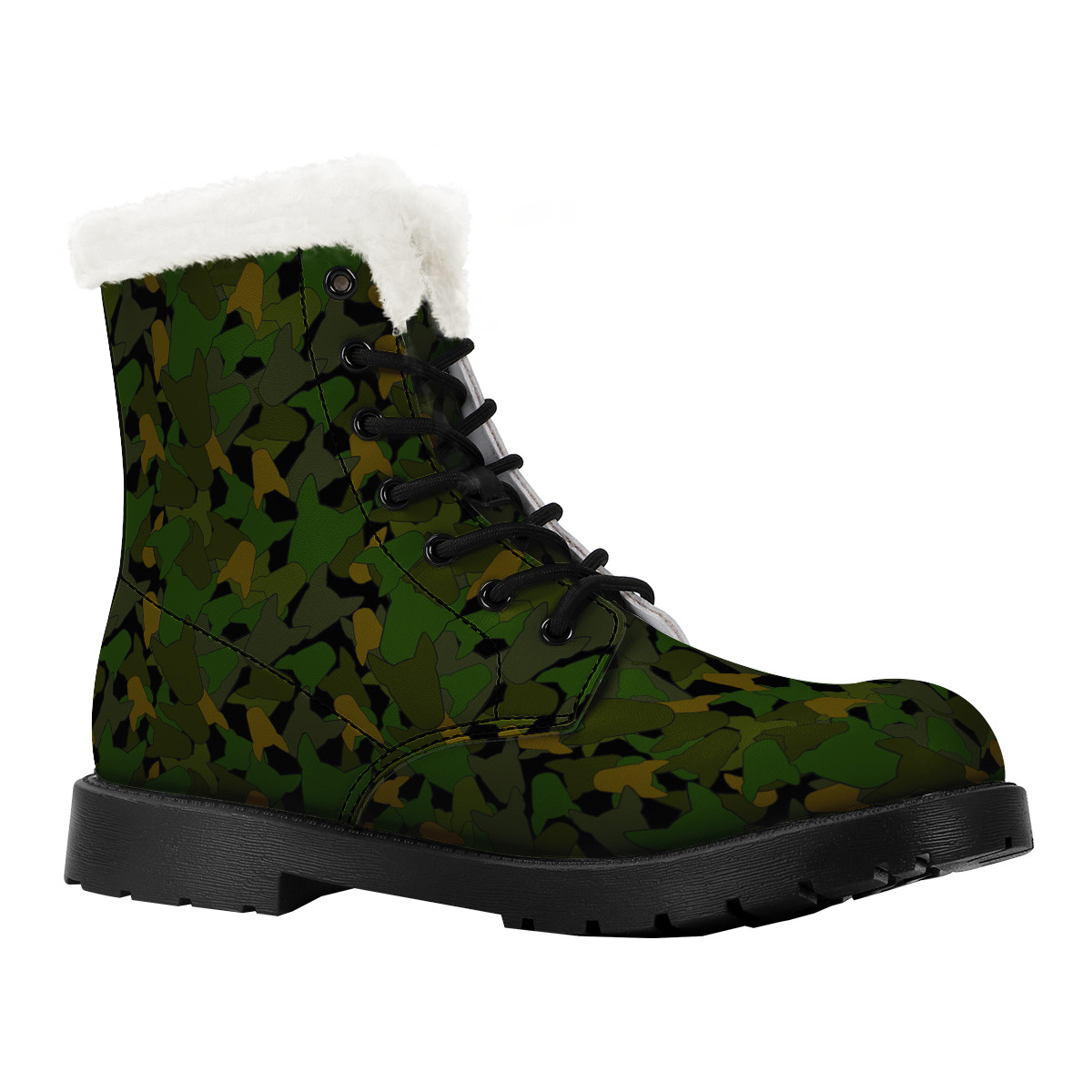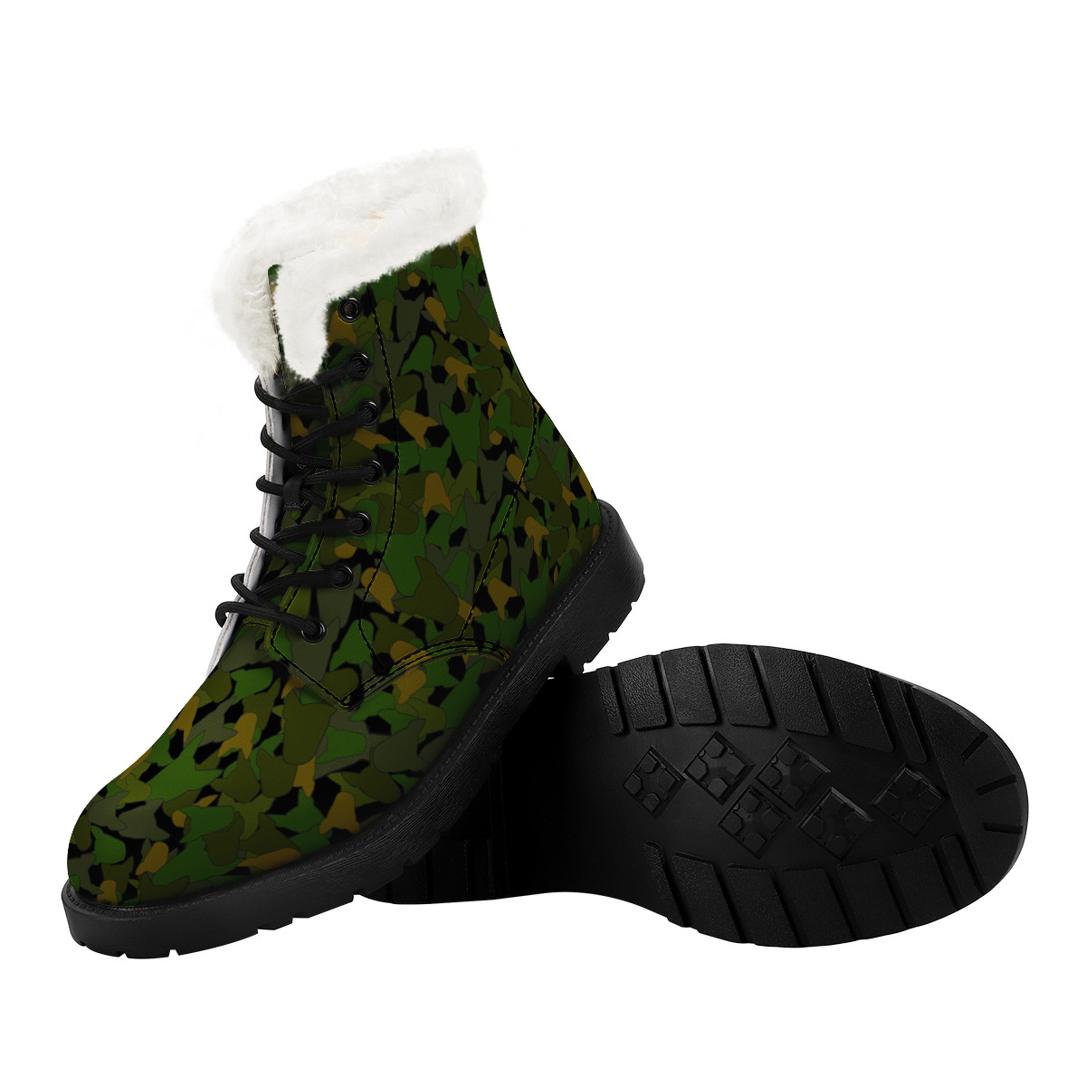 Bully Camo Faux Fur Leather Boots, Bully Dog Shoes, Winter Boots, Women Boots, Men Boots, Camouflage Boots