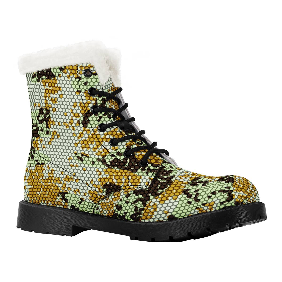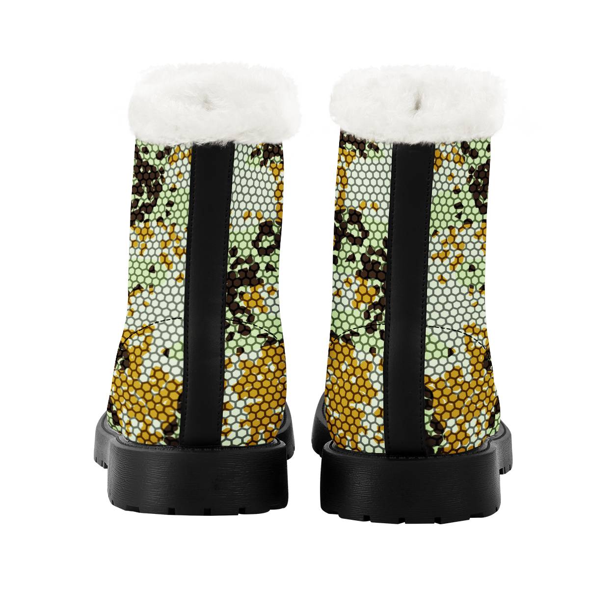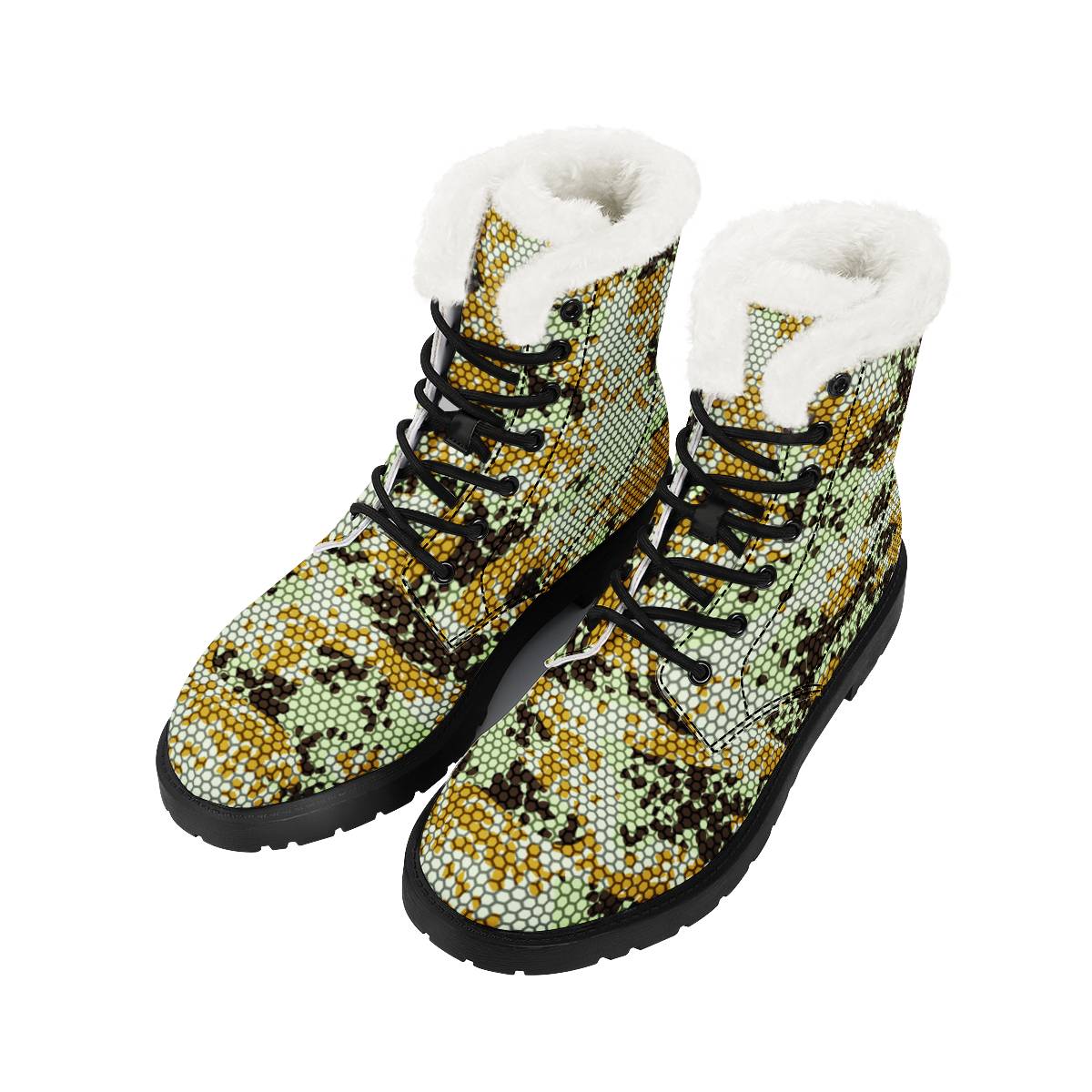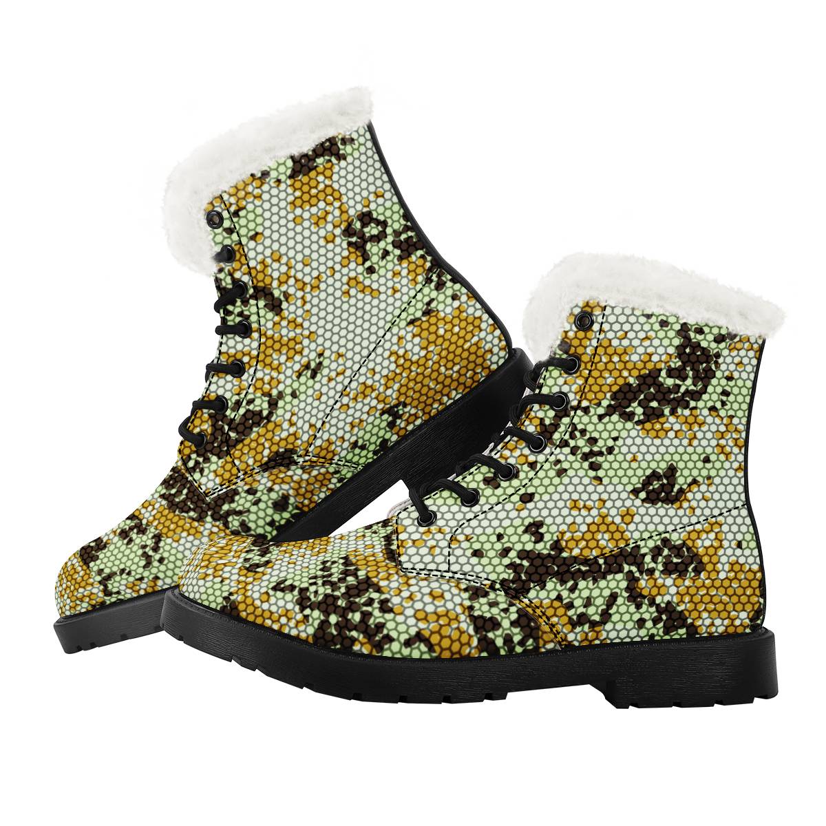 Pixel Camo Desert Faux Fur Leather Boots, Camo Shoes, Winter Boots, Women Boots, Men Boots, Camouflage Boots