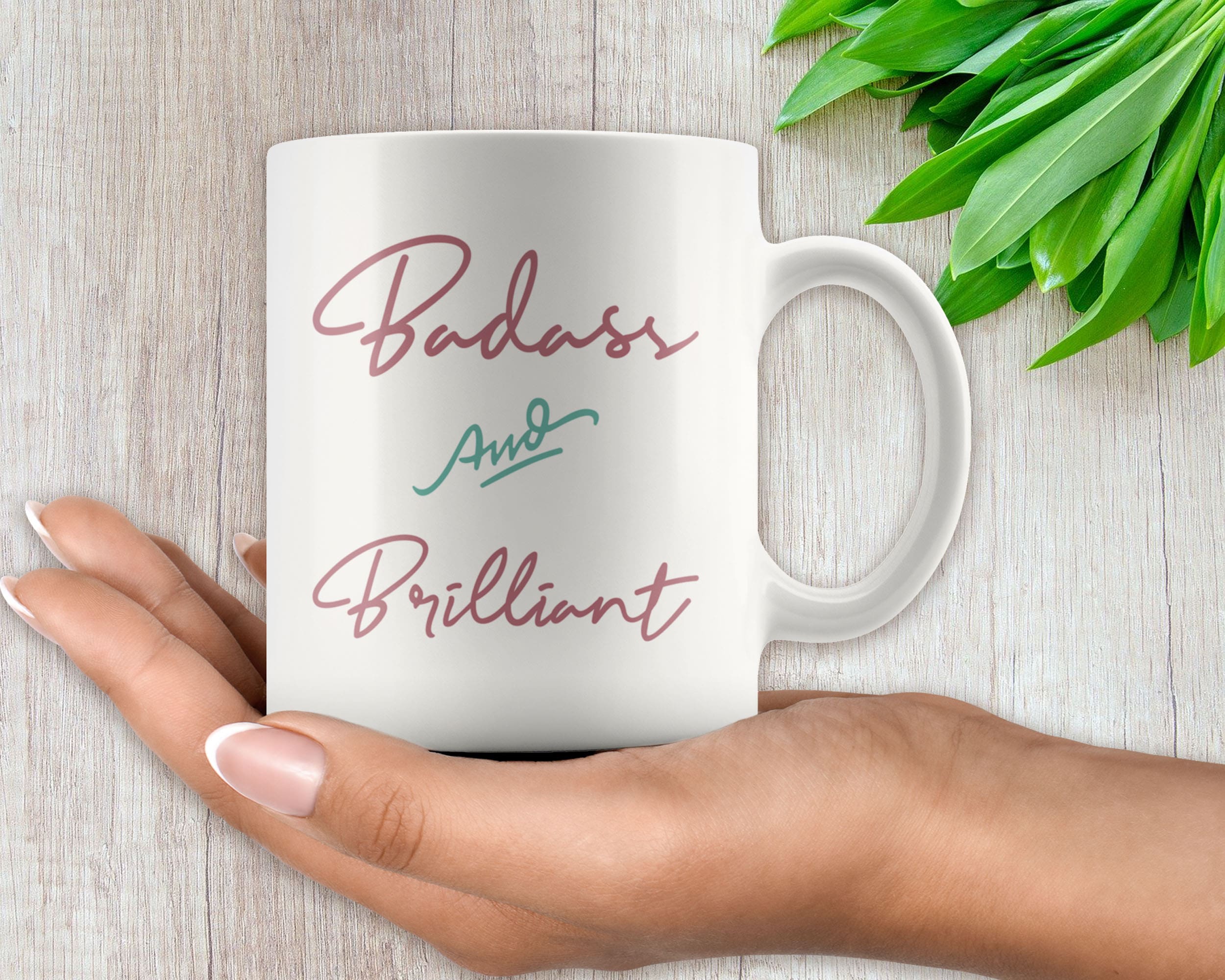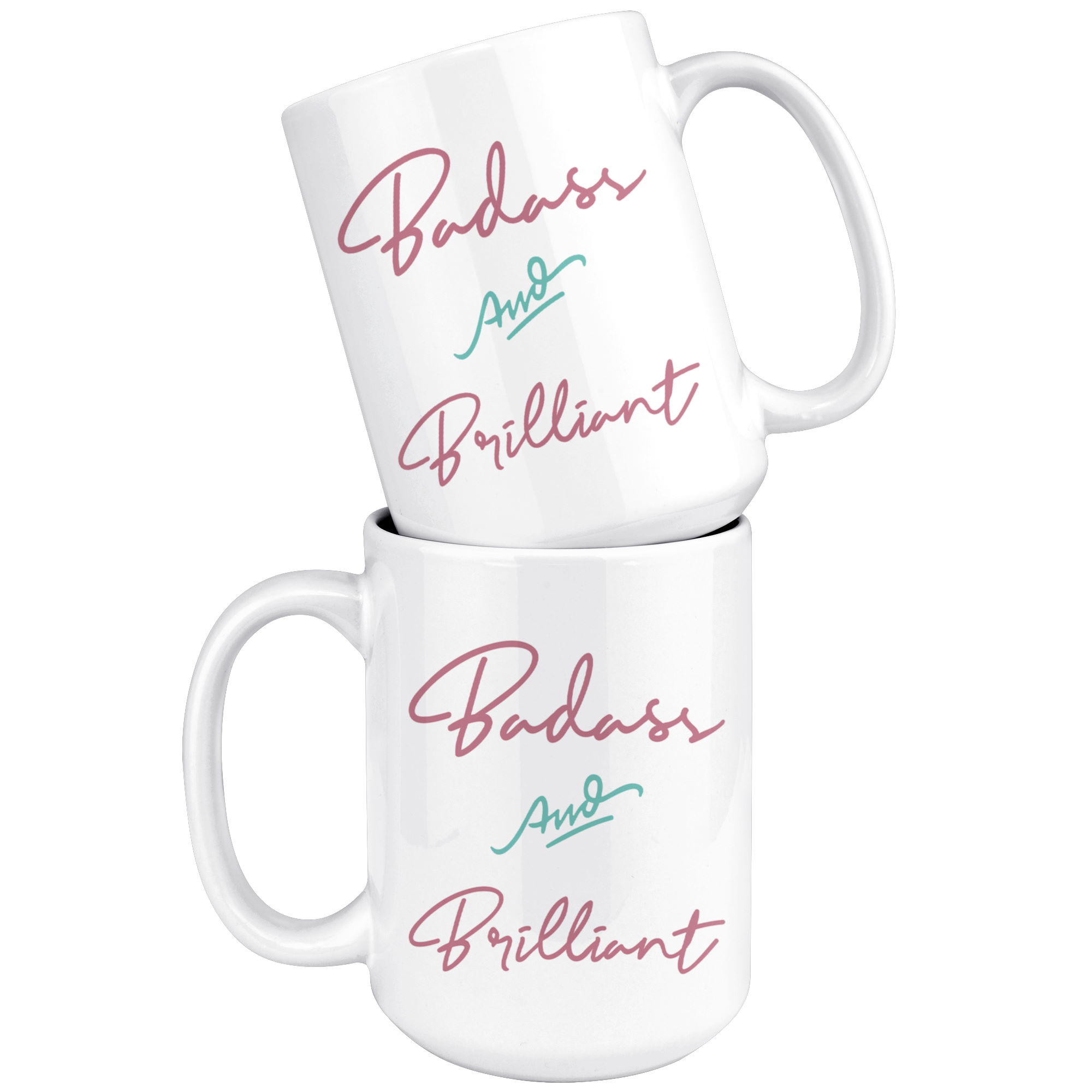 Badass and Brilliant Mug, Feminist Coffee Mug, Boss Lady Mug, Tea Mug, Coffee Cup, White Ceramic Mug 11oz/15oz