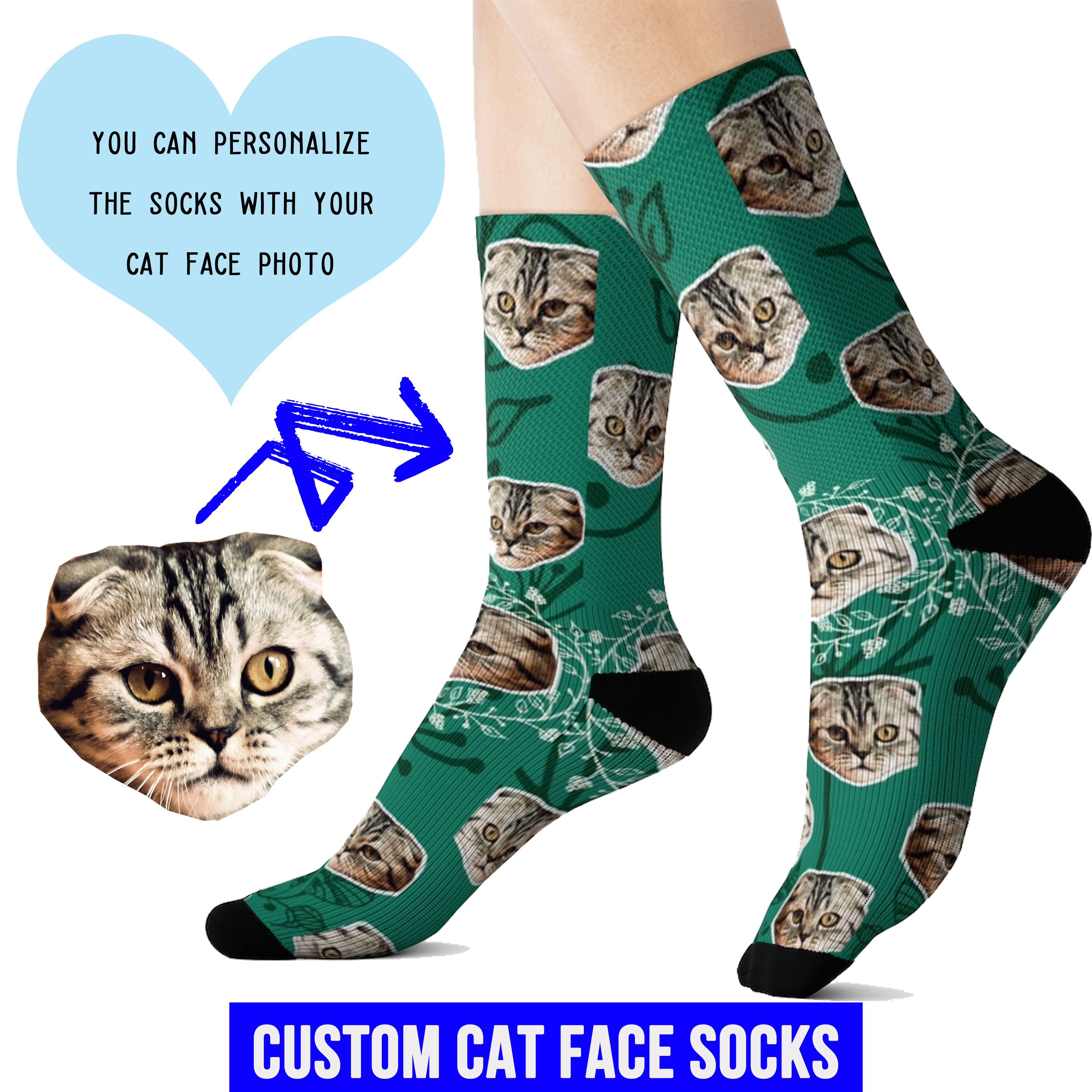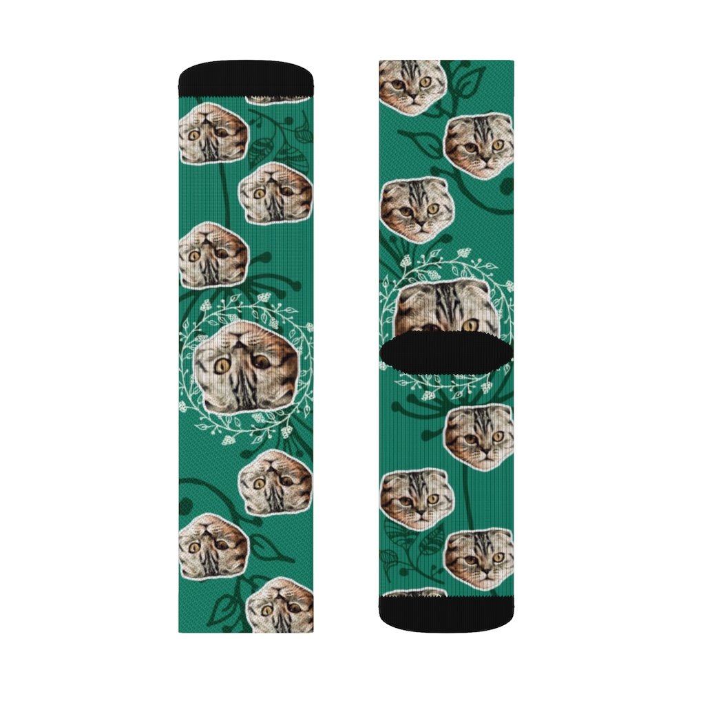 Custom Cat Face Socks With Floral Background, Custom Face Socks, Personalized Socks, Cat Socks, Pet Socks