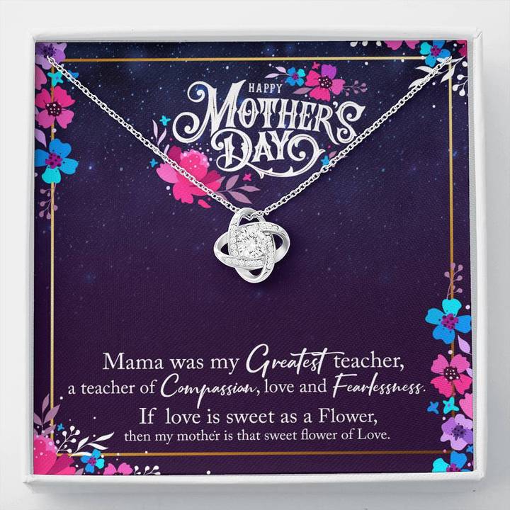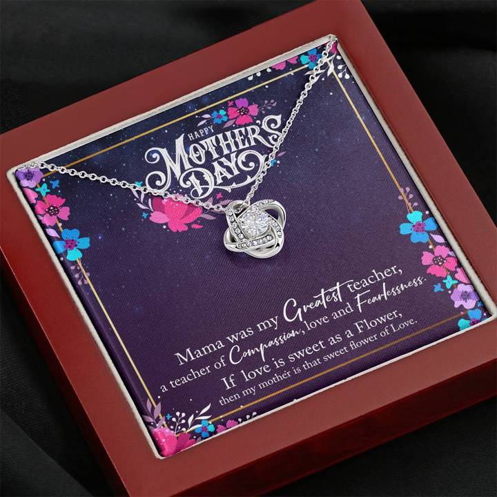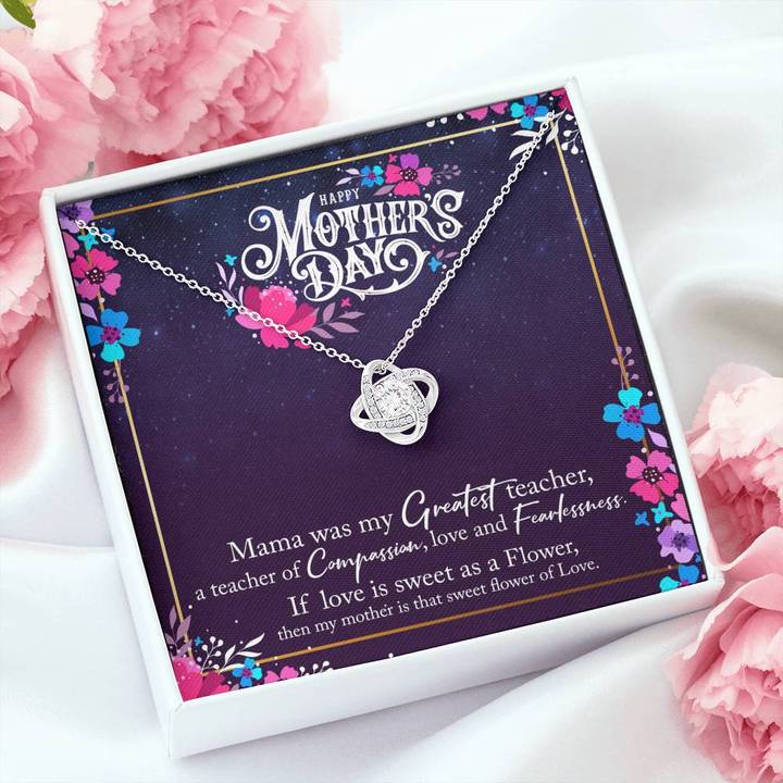 Mother's Day Necklace, Gift for Mom, Mothers Day Gifts, Message Card Necklace, Mama Greatest Teacher Love Knot Necklace