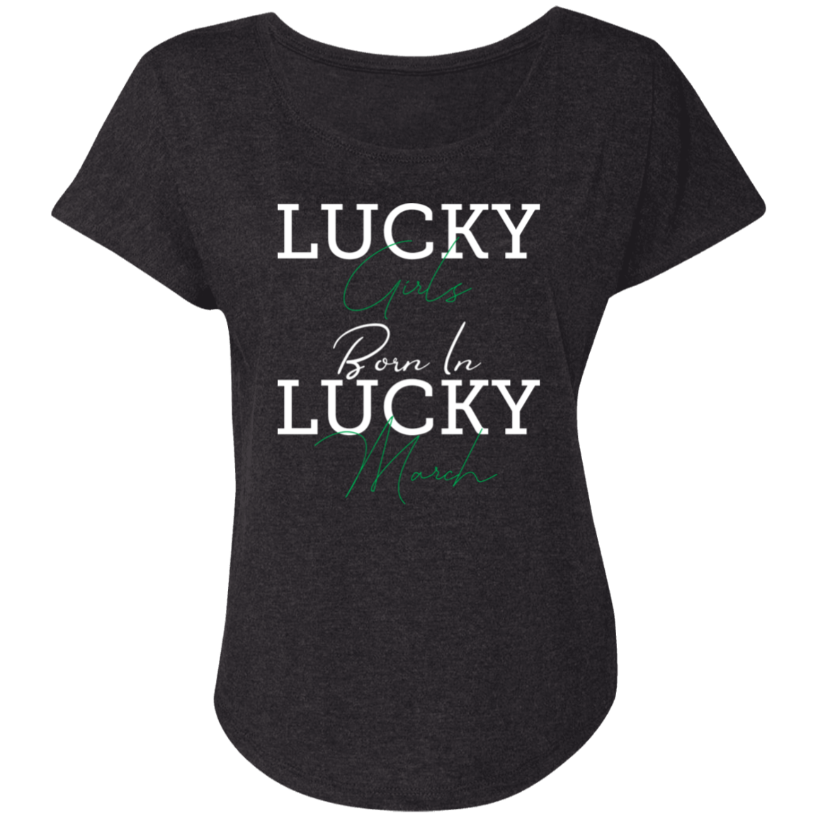 Lucky Girl Born In Lucky March Triblend Dolman Shirt Women
