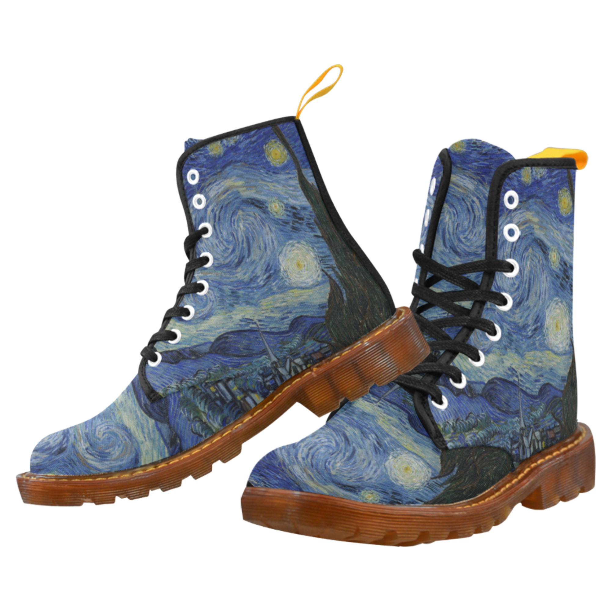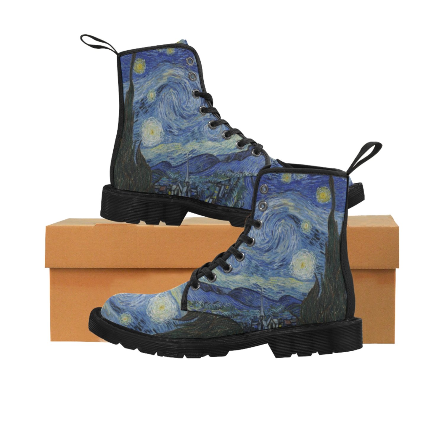 Van Gogh Starry Night Boots, Lace Up Boots, Women Boots, Men Boots, Canvas Boots, Martin Boots