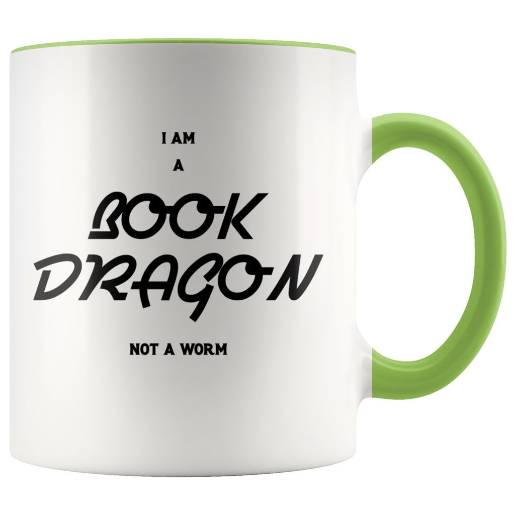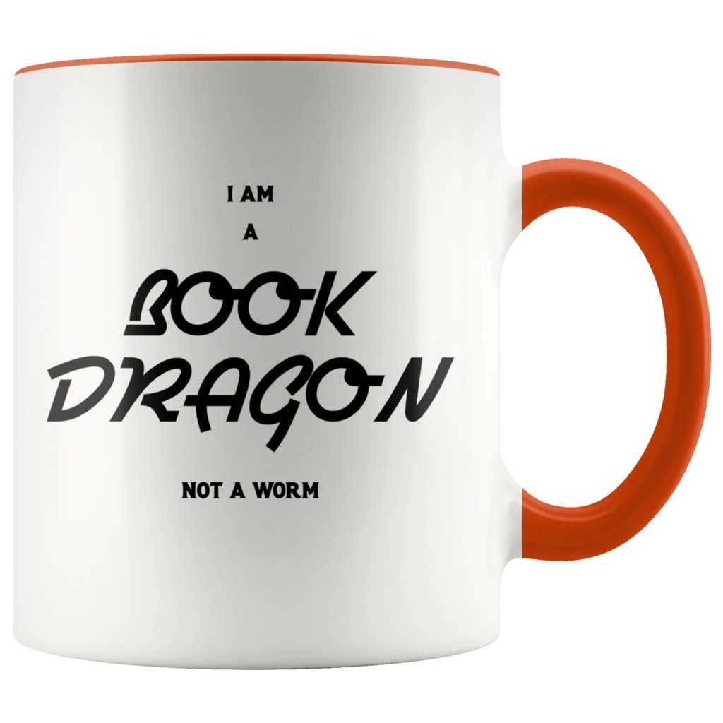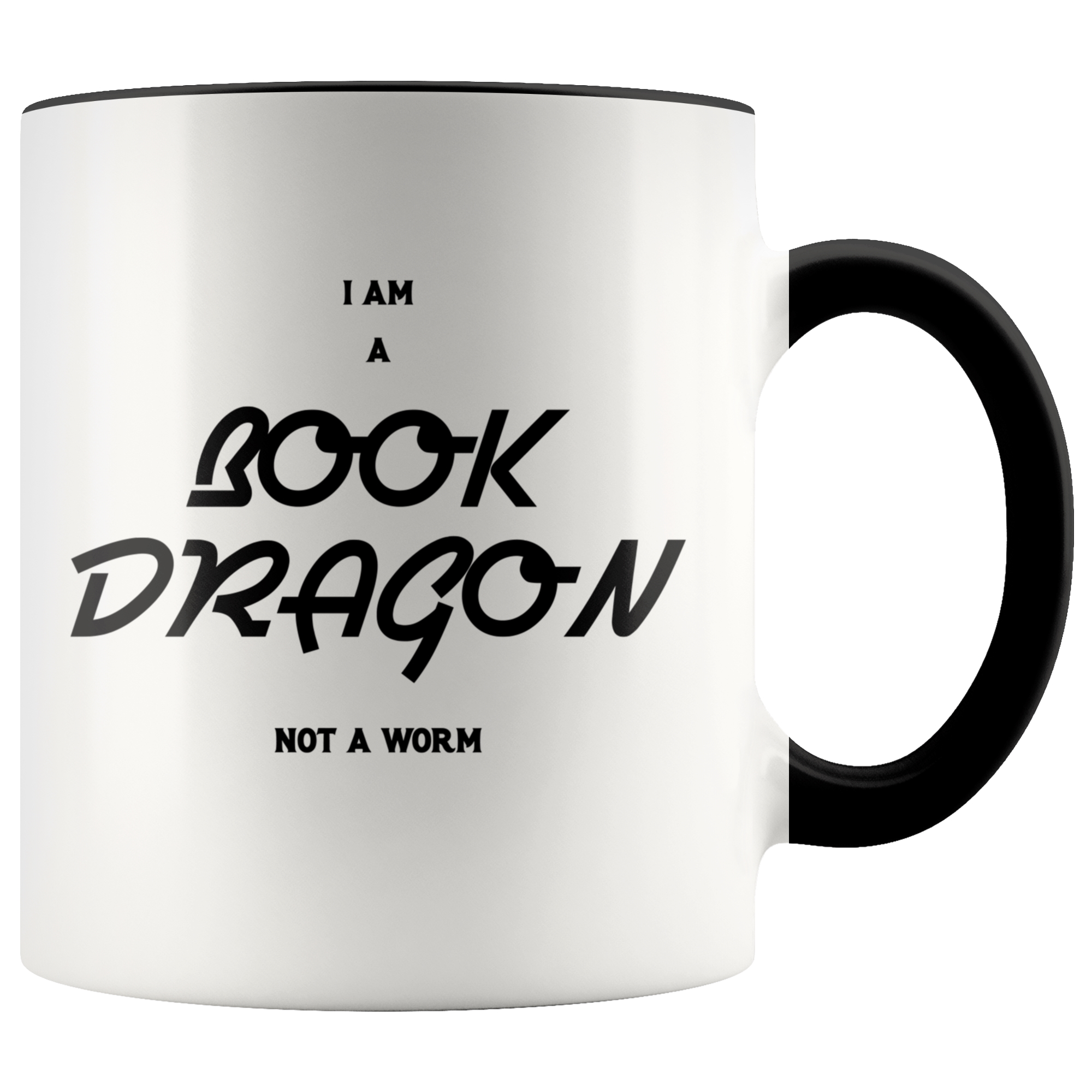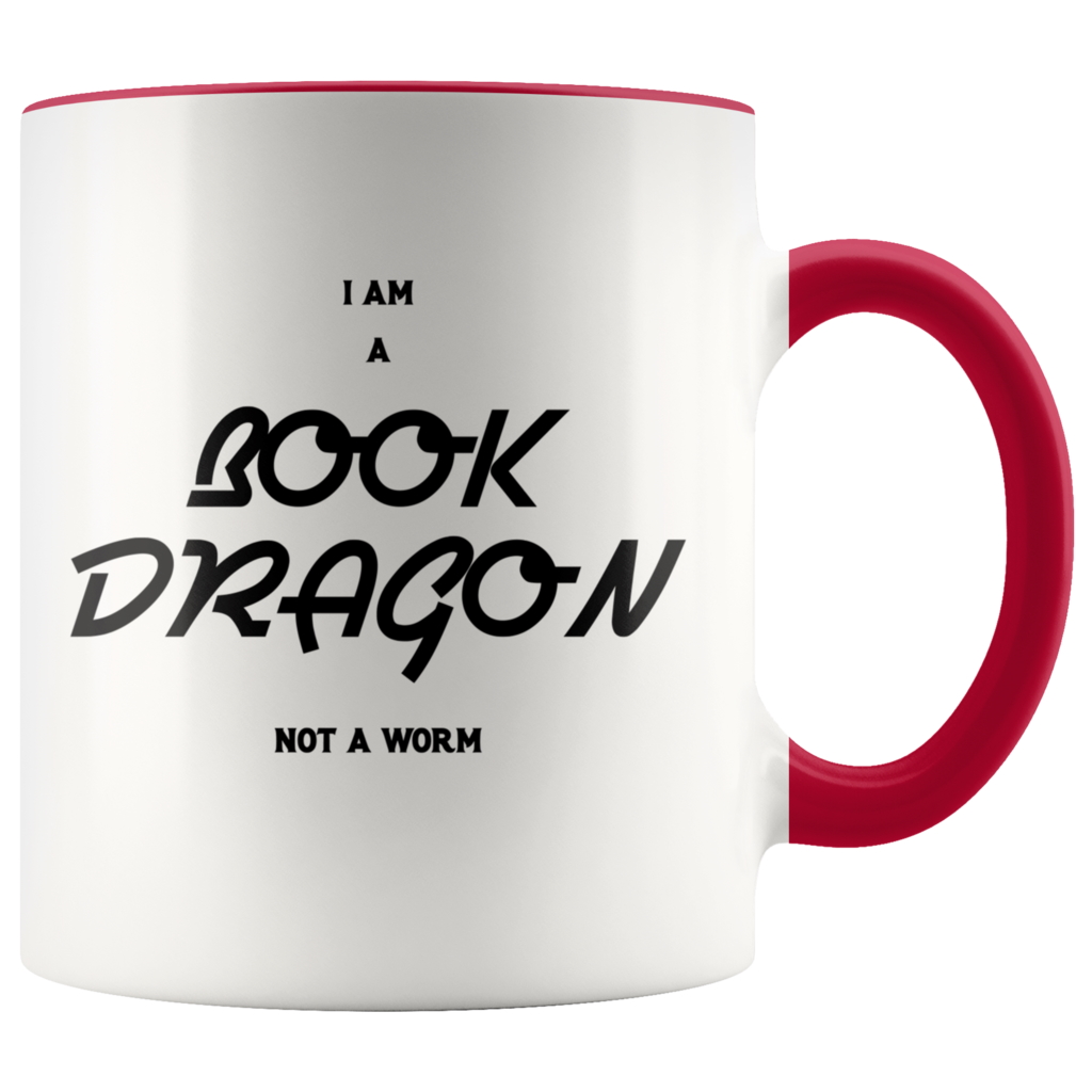 Book Lover Mug, I Am A Book Dragon Not A Worm Coffee Mug, Accent Mug 11oz, White Ceramic Mug