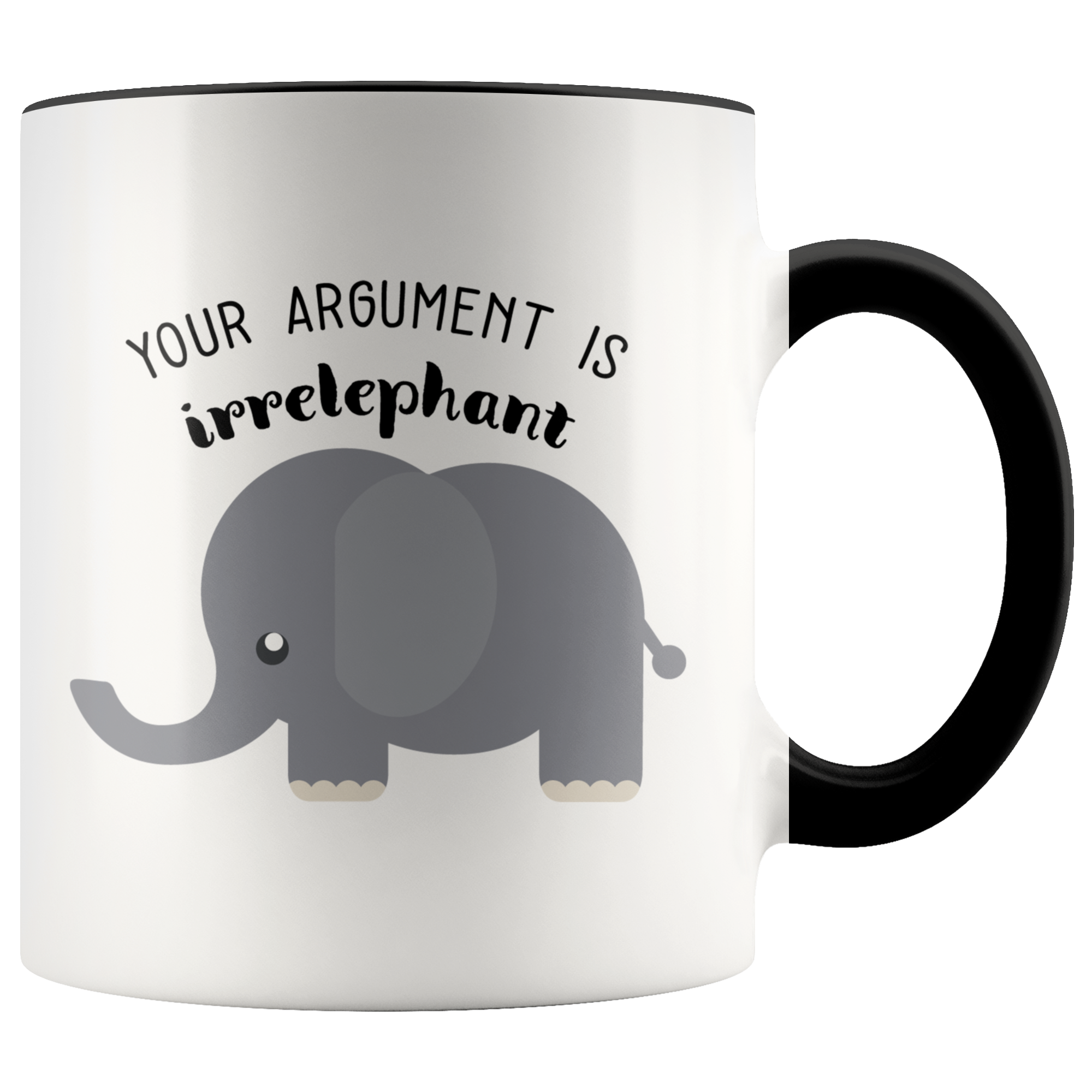 Your Argument is Irrelephant Mug, Elephant Coffee Mug, Accent Mug 11oz, White Ceramic Mug, Coffee Cup