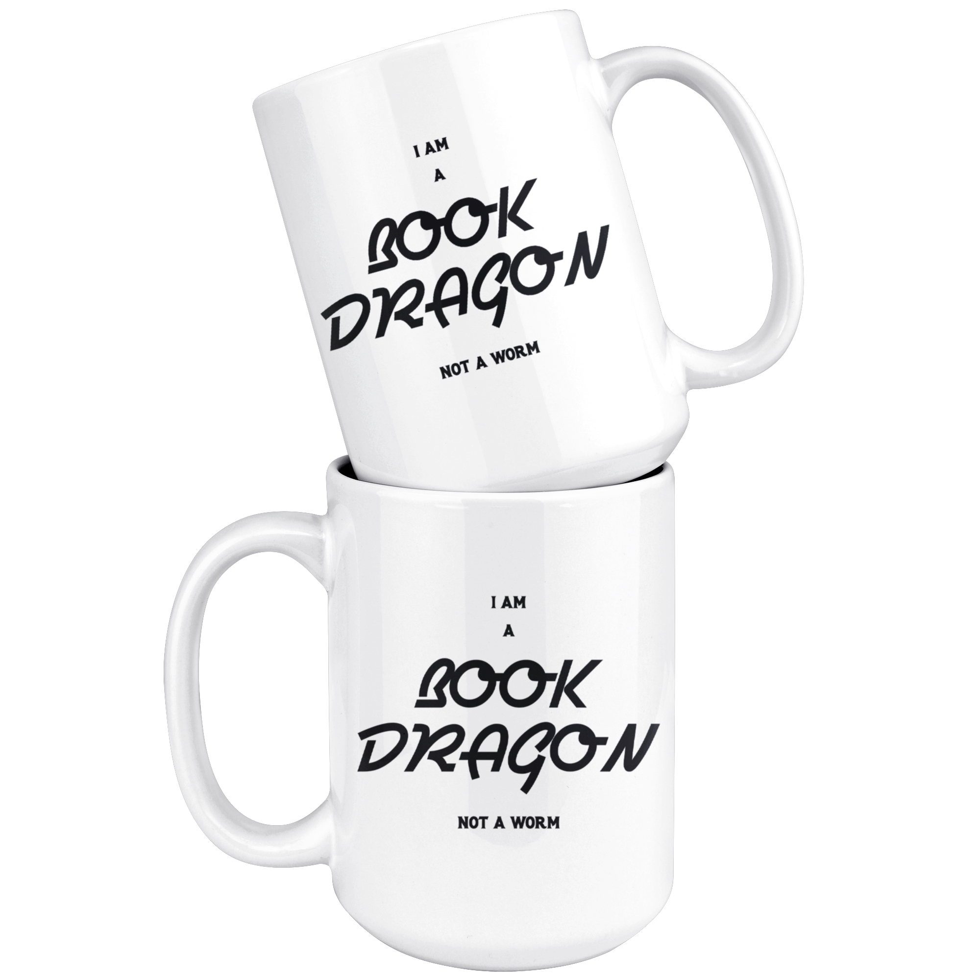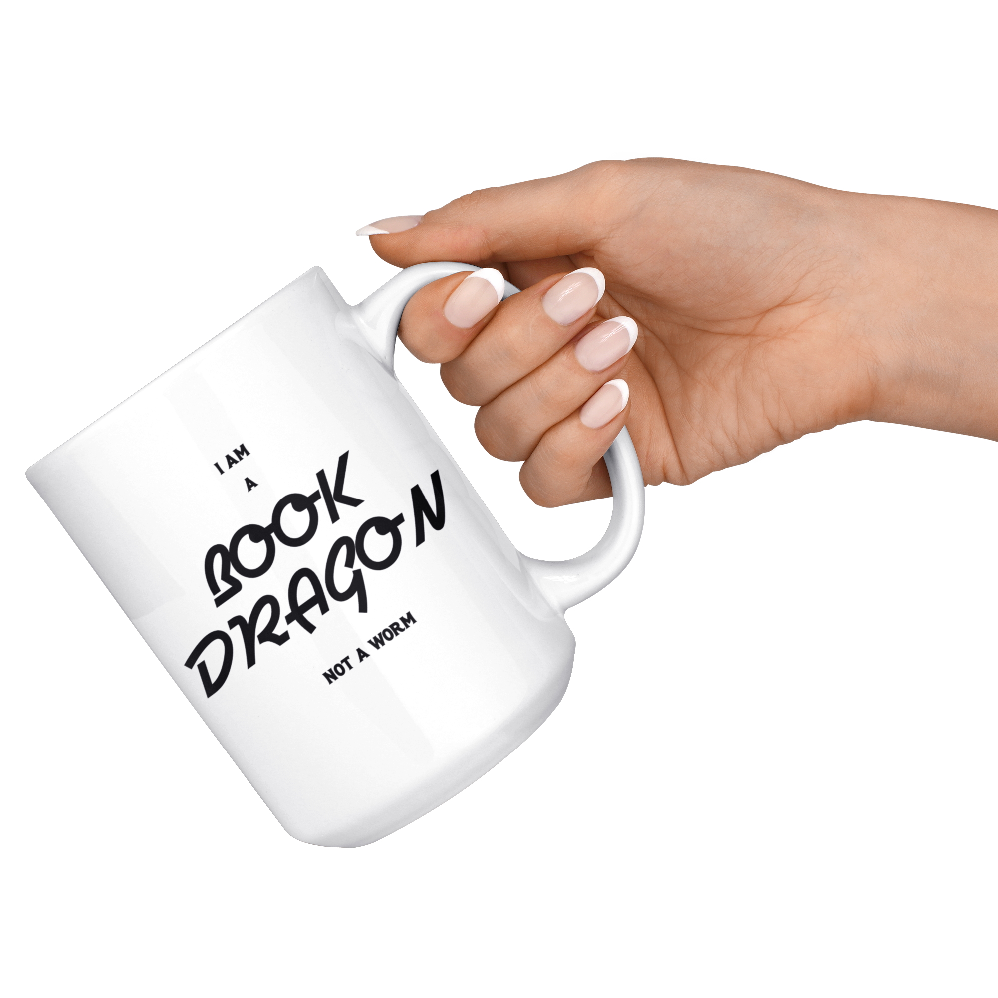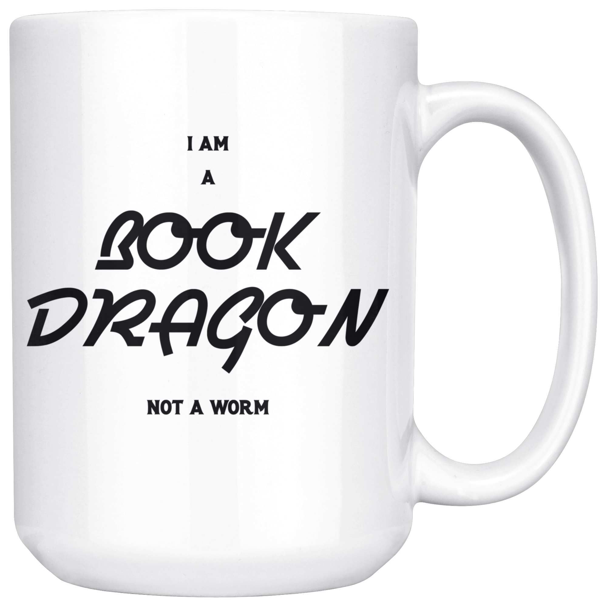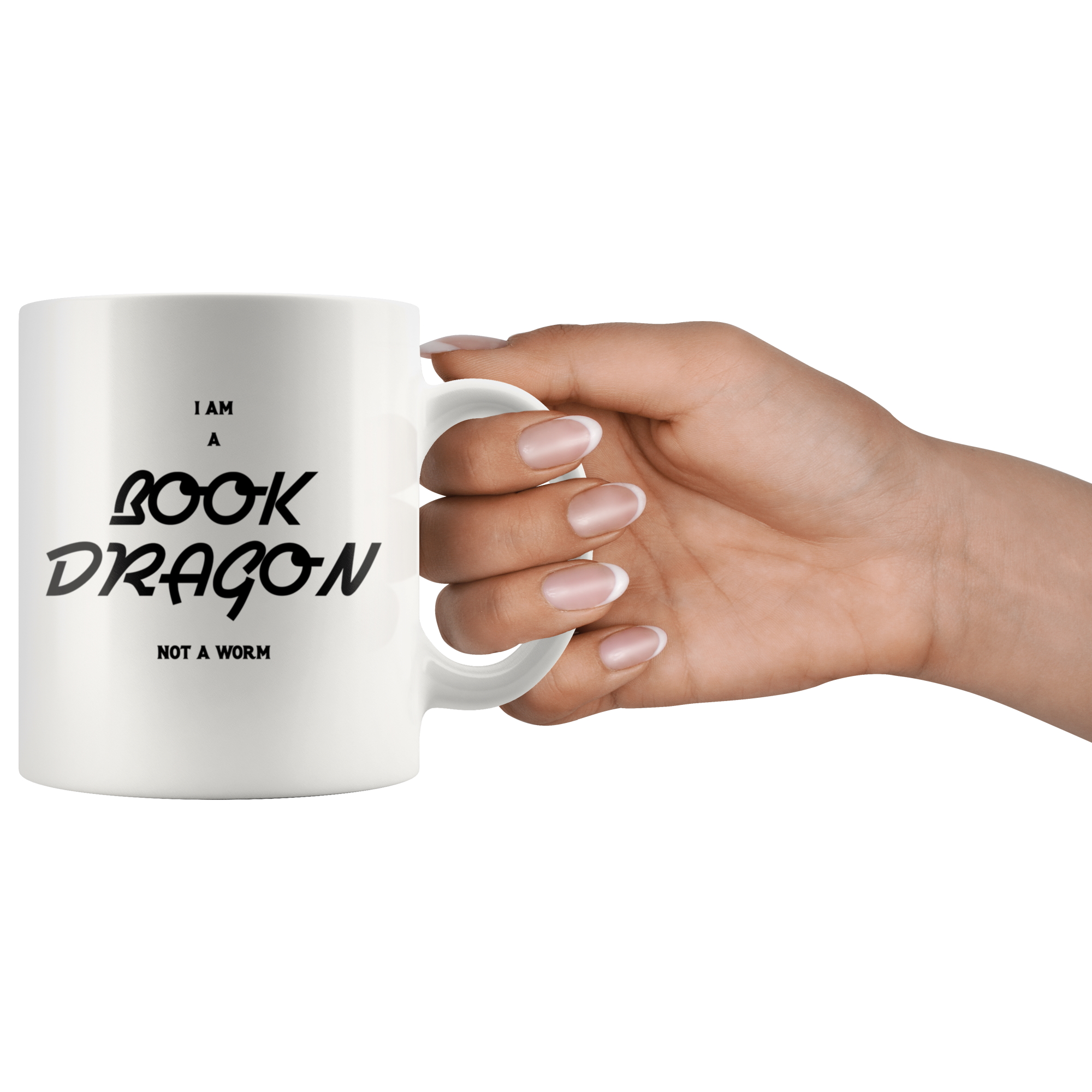 Book Lover Mug, I Am A Book Dragon Not A Worm Coffee Mug, Tea Mug, Coffee Cup, White Ceramic Mug 11oz/15oz