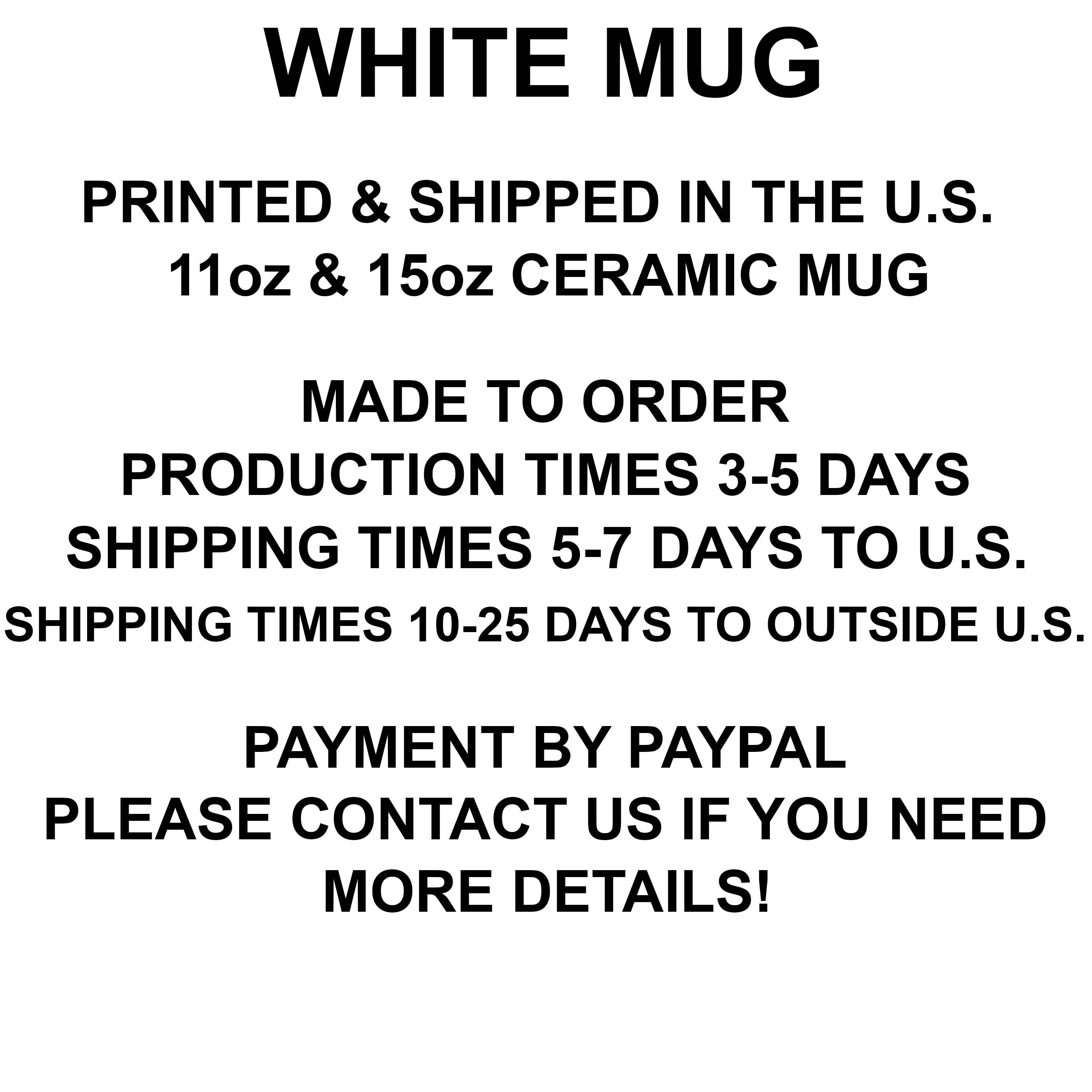 • White ceramic mug 11oz and 15oz.