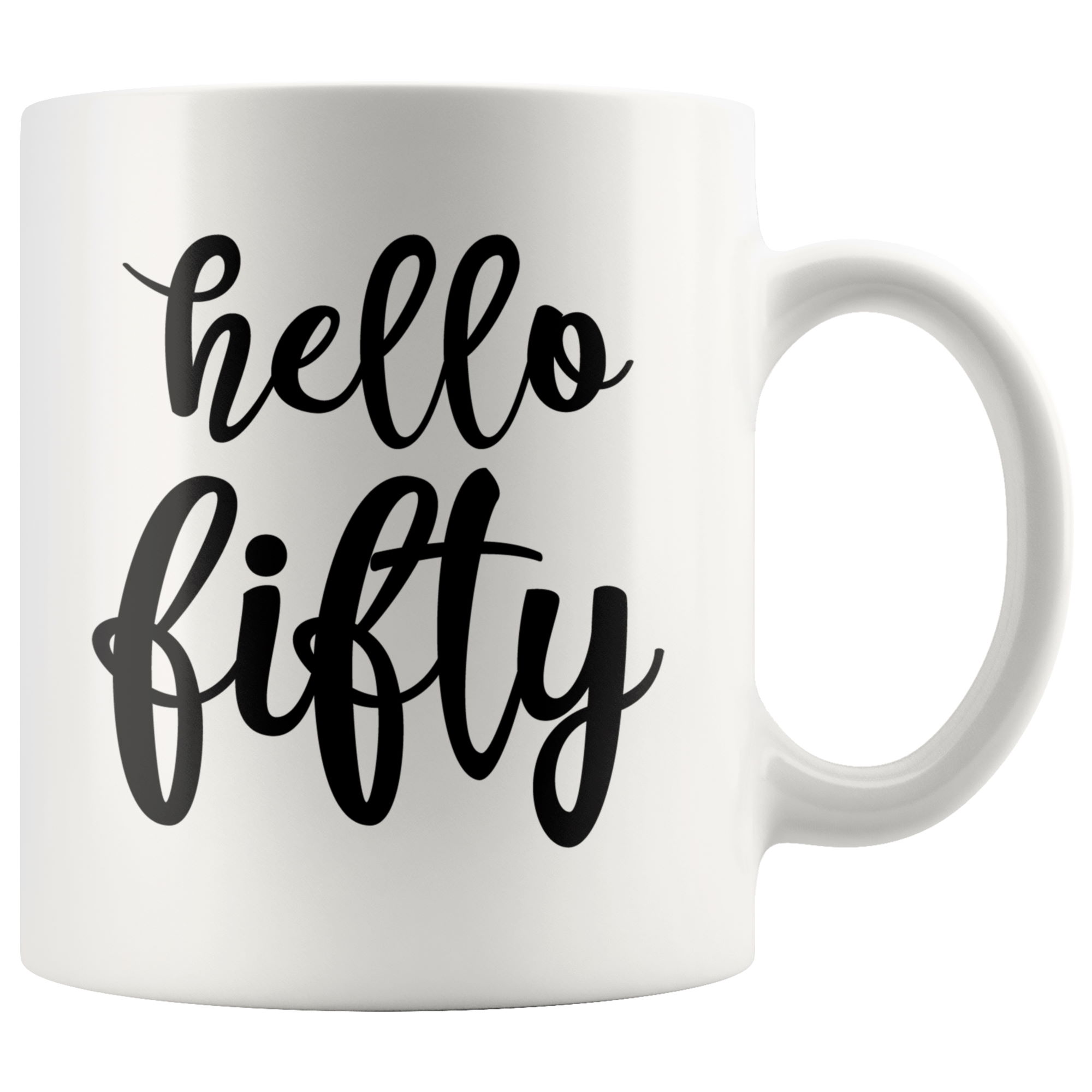 Grandparent Party Gifts, Grandpa 50th Birtday Mug, Grandma 50th Birtday Mug, Gift for Grandmother, Gift for Grandfather, Hello Fifty, Accent Mug 11oz