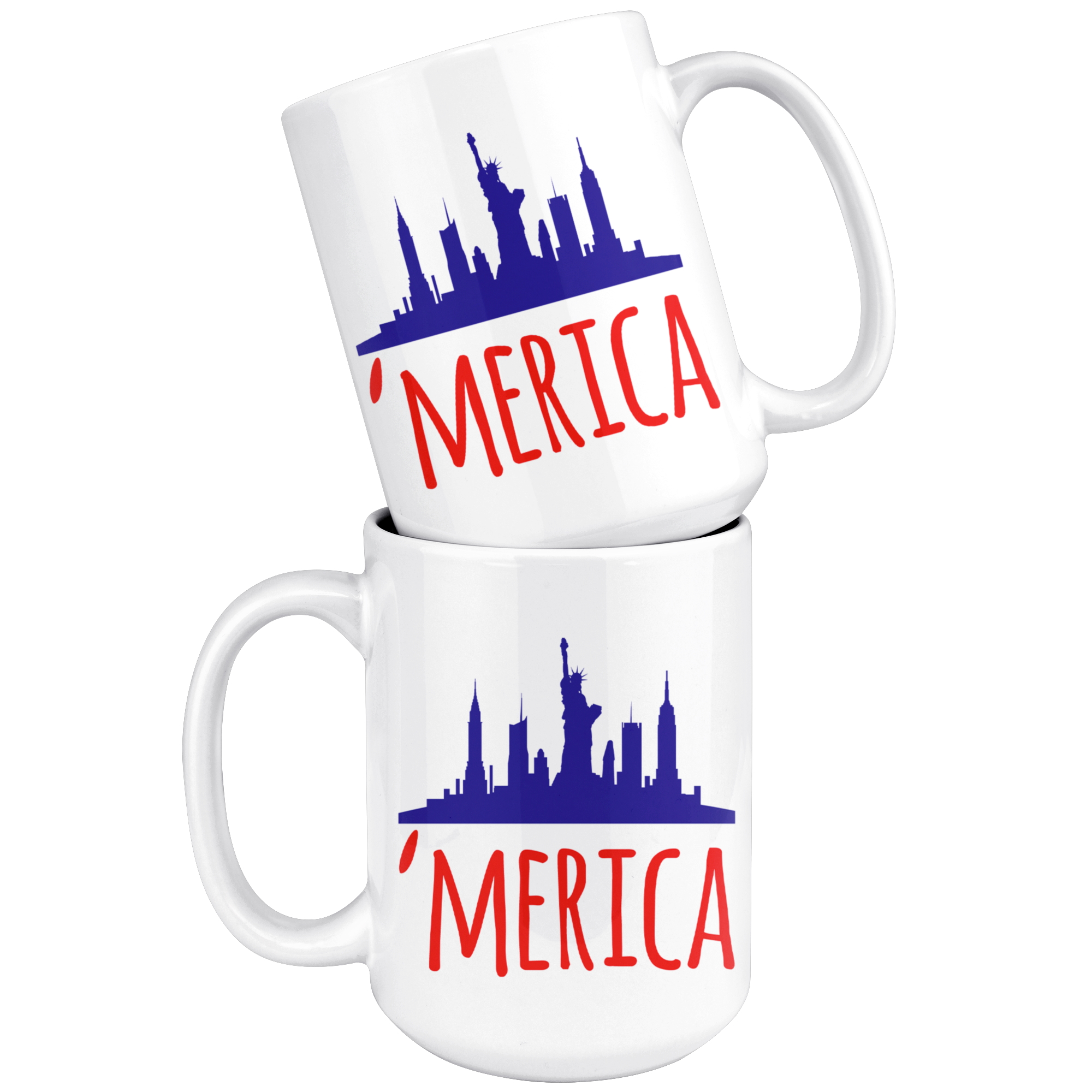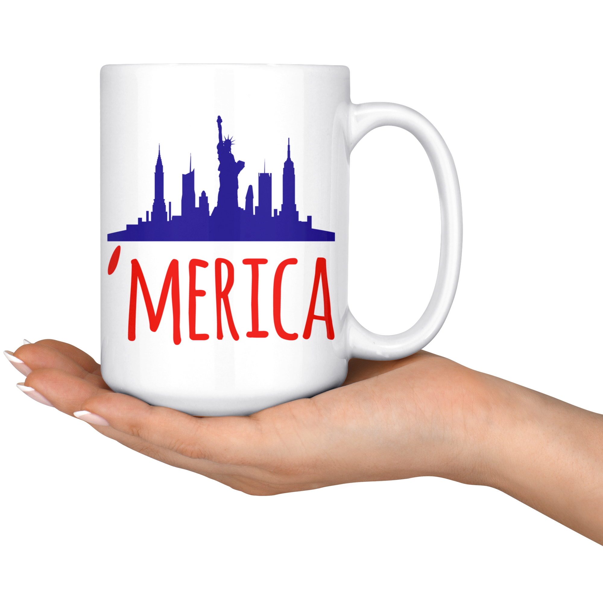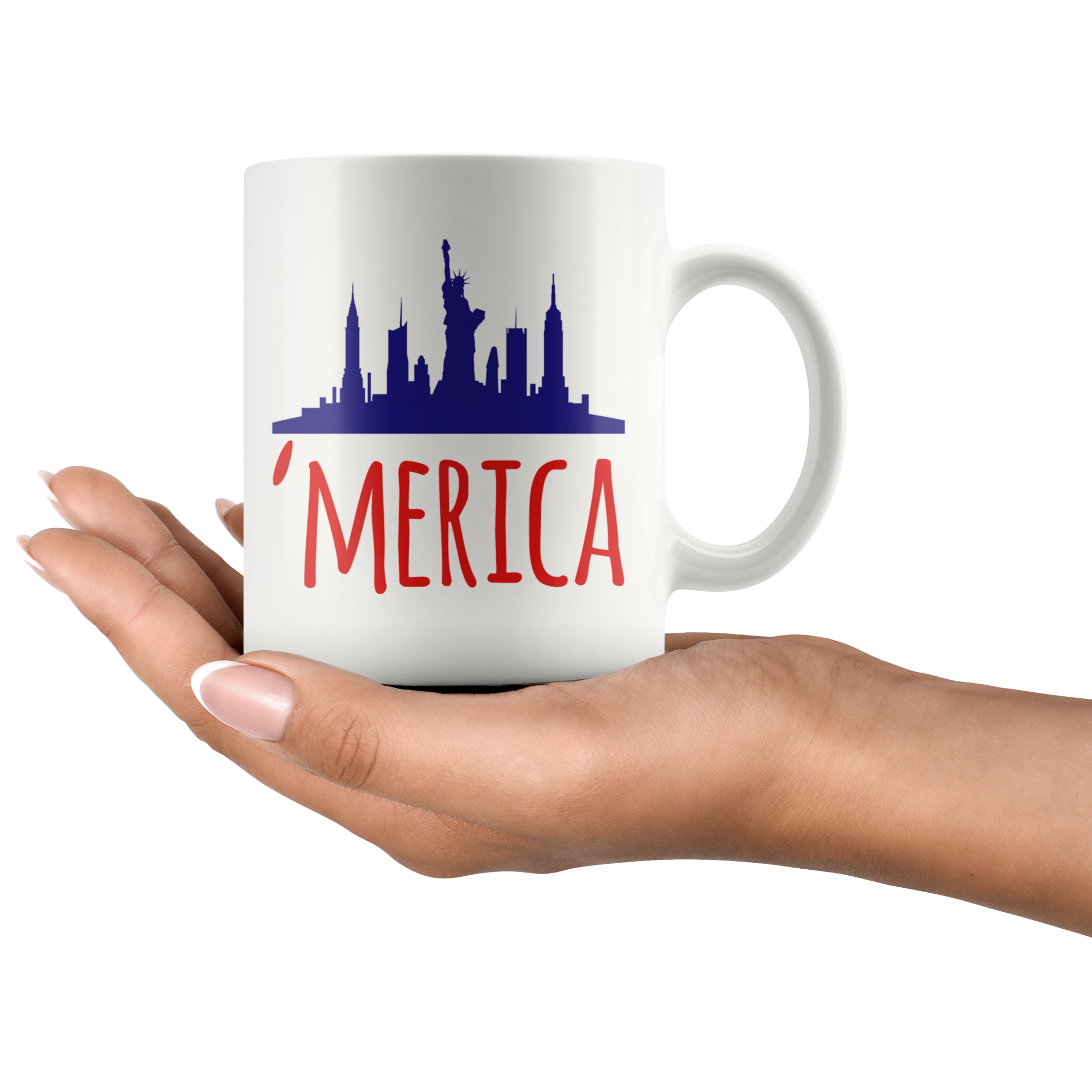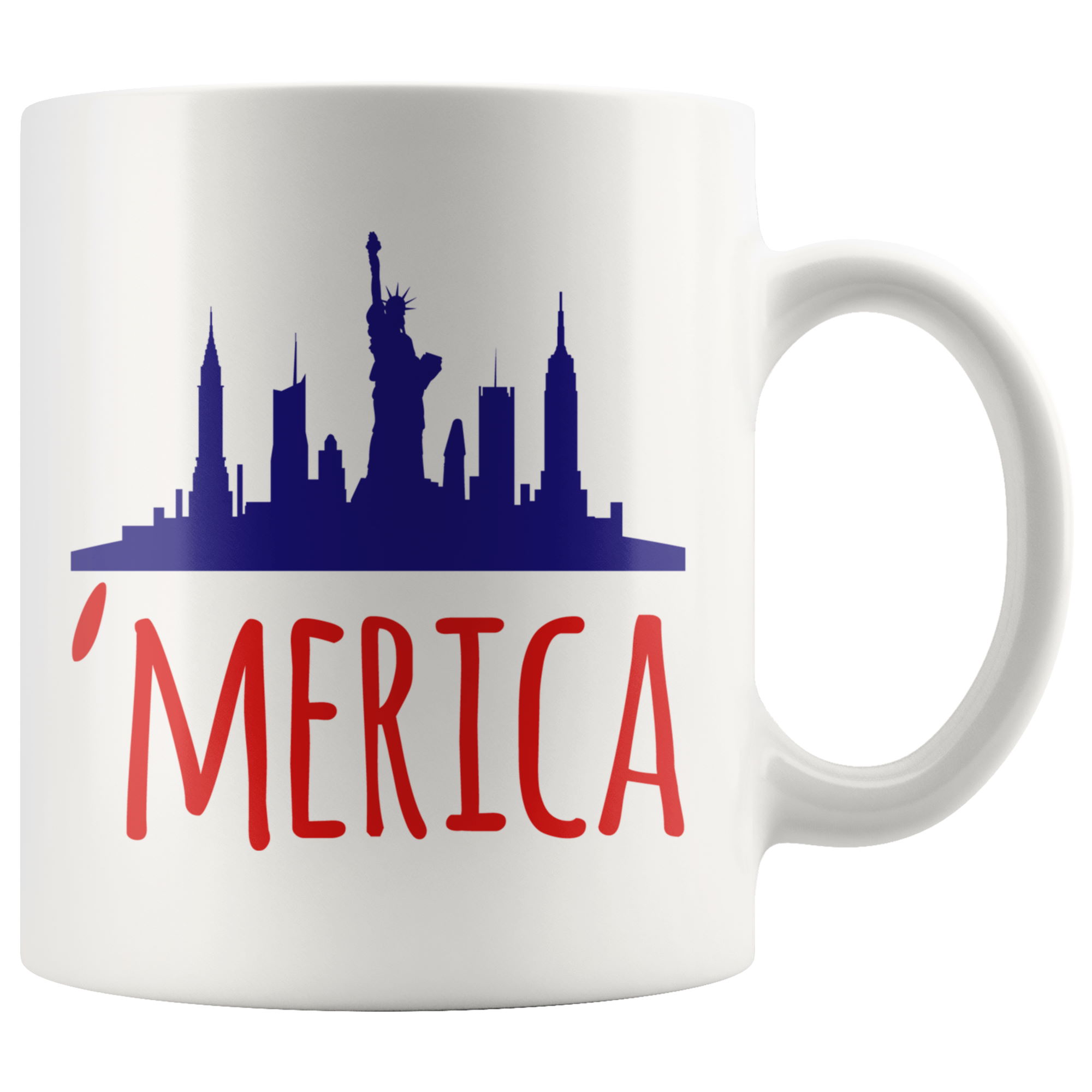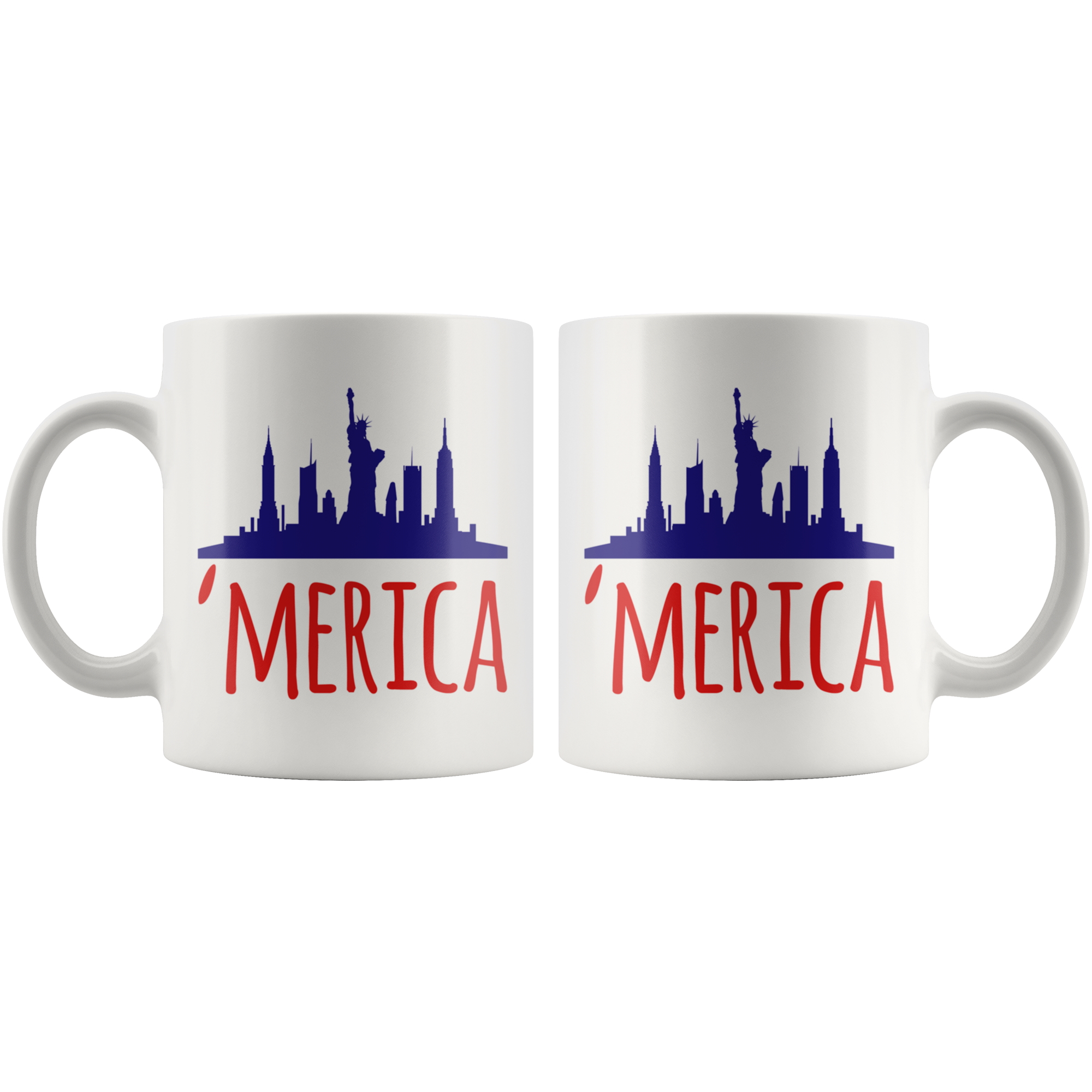 Merica Coffee Mug, Liberty Statue Mug, New York City Coffee Mug, NYC Mug, Coffee Cup, White Ceramic Mug 11oz/15oz