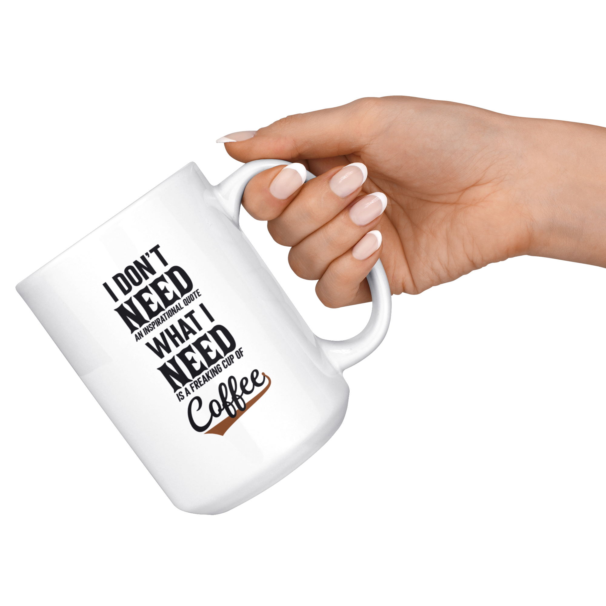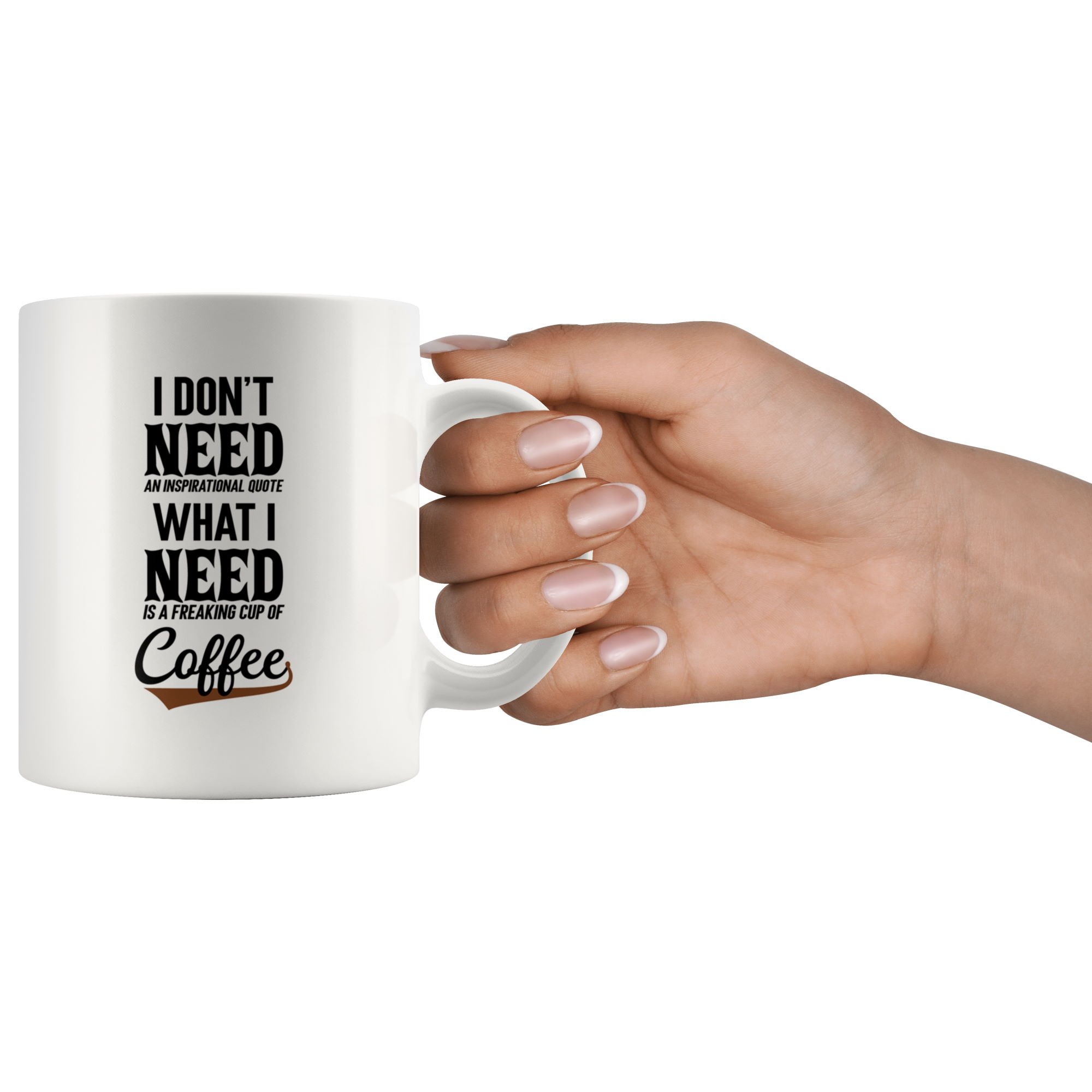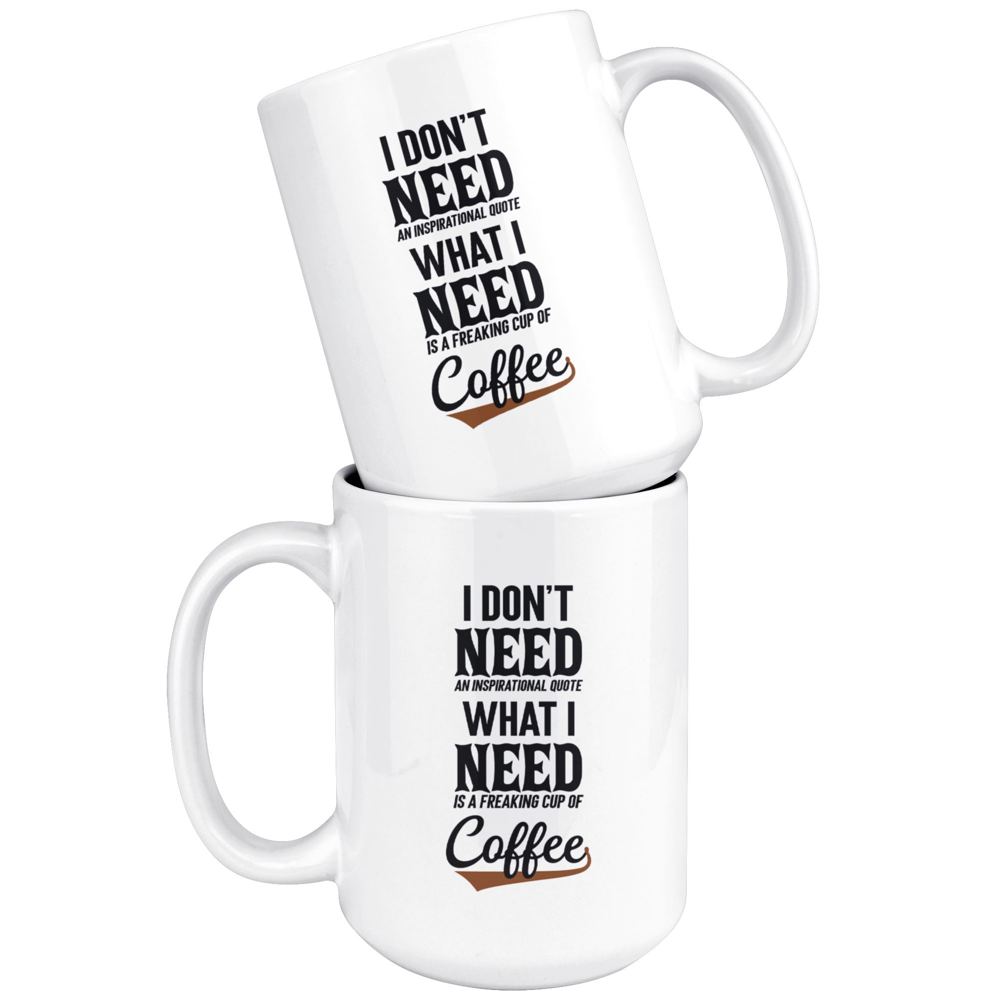 Mug for Coffee Lovers, I Don't Need An Inspirational Quote What I Need Is A Freaking Cup Of Coffee, Coffee Cup, White Ceramic Mug 11oz/15oz