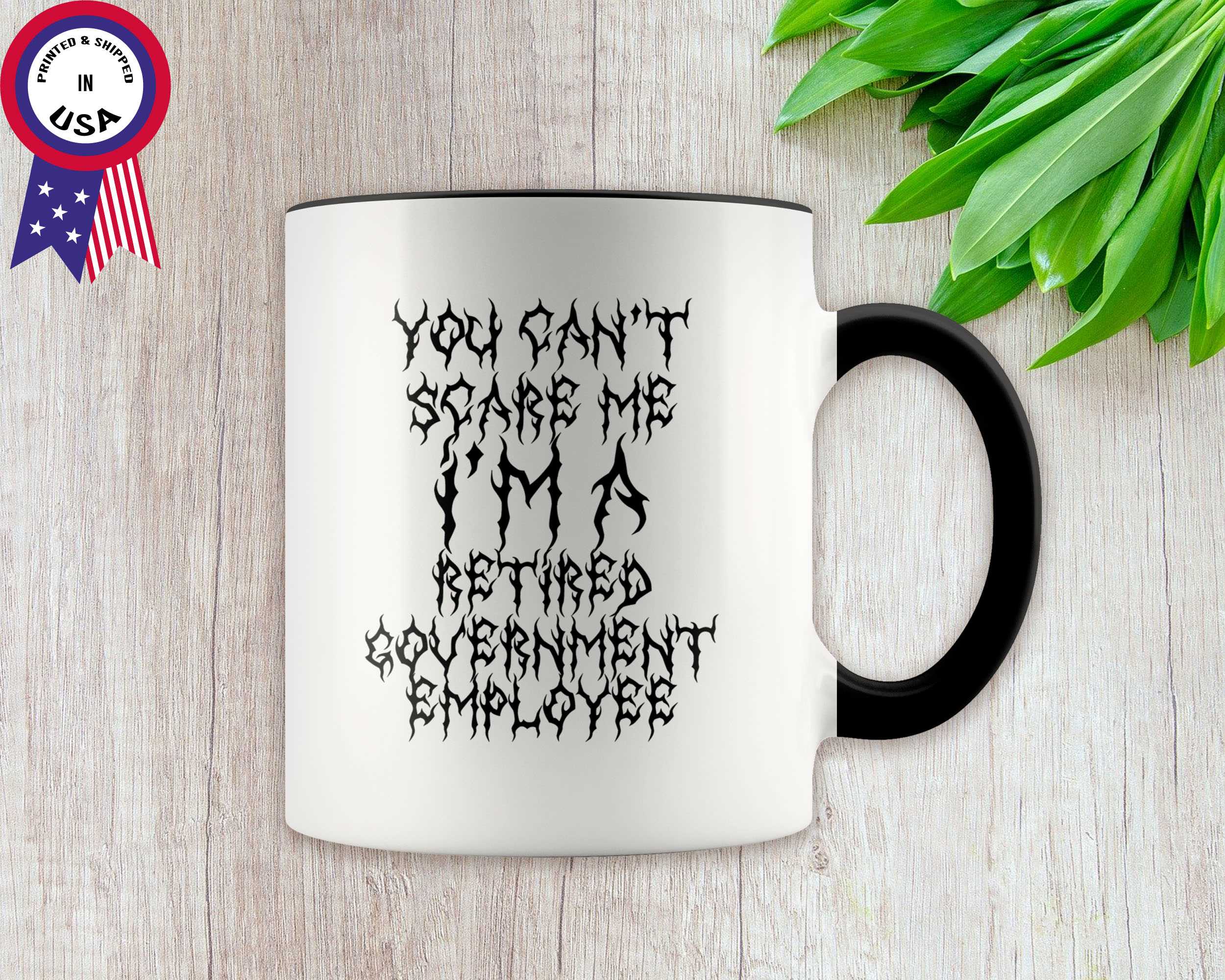 You Can't Scare Retired Government Employee Coffee Mug, Metal Head Coffee Mug, Retirement Mug, Retirement Gift Mug, Accent Mug 11oz