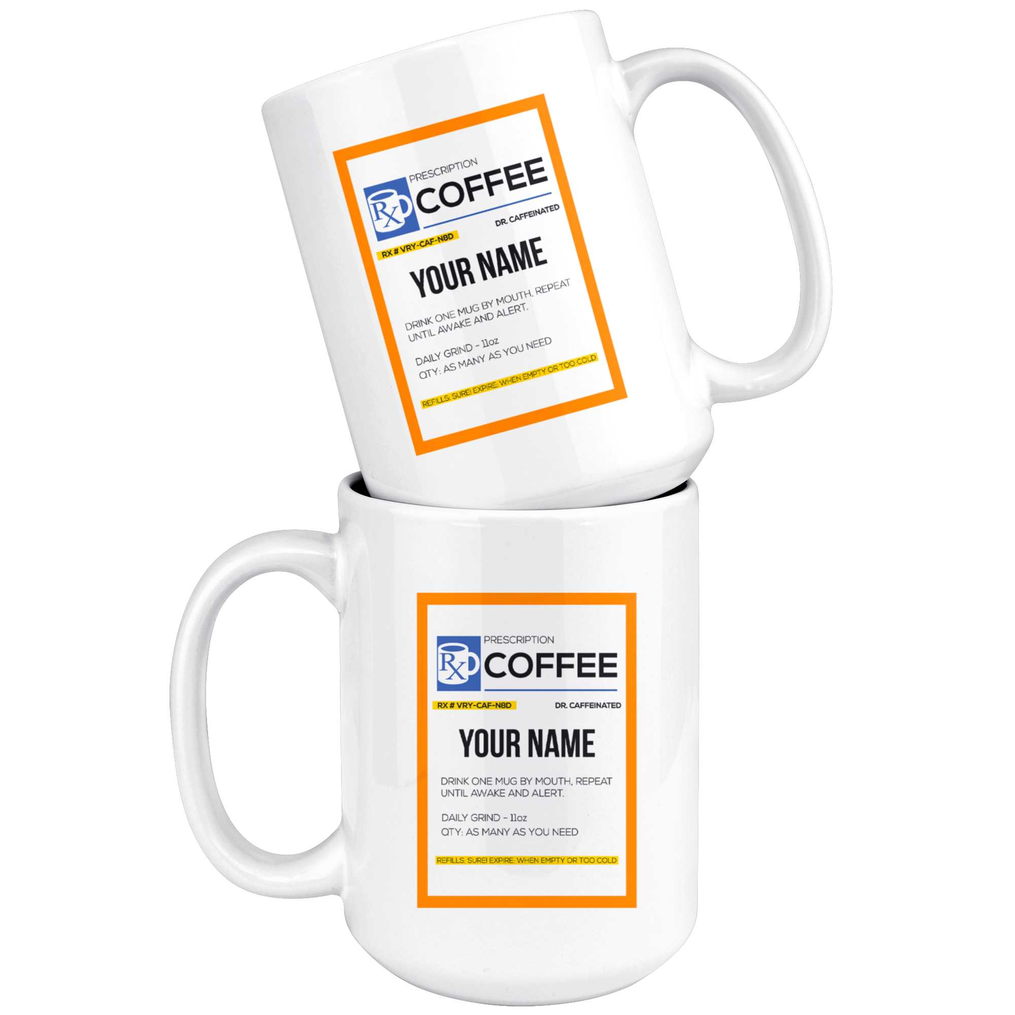 Personalized Prescription Coffee Mug, Custom Coffee Mug, Name Mug, White Ceramic Mug 11oz/15oz