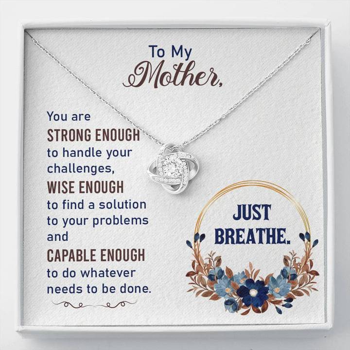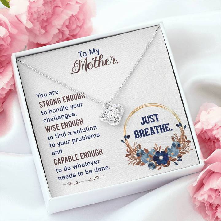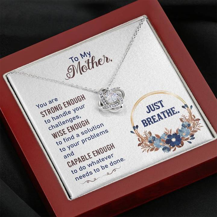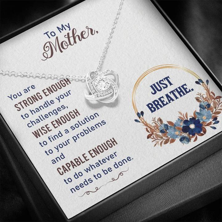 Mother's Day Necklace, Gift for Mom, Mothers Day Gifts, Message Card Necklace, Love Knot Necklace, Strong Wise Capable Mom